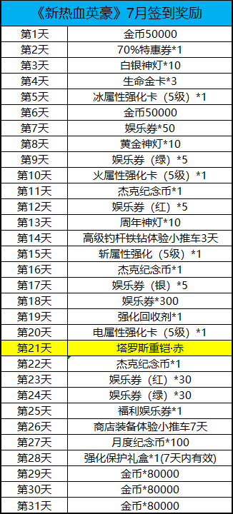 以下为签到活动奖励列表: